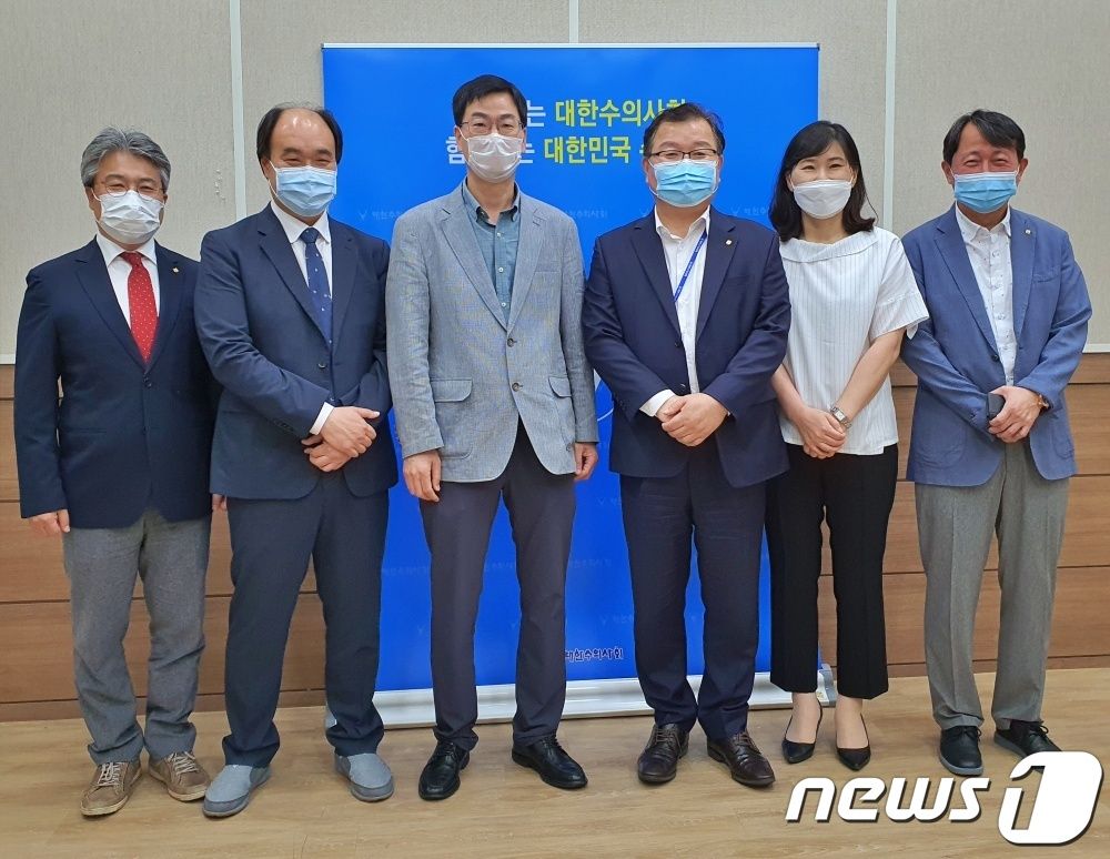 허주형 대한수의사회장<사진 오른쪽 세번째>은 "가축 전염성 질병은 사람에게도 영향을 미칠 수 있다"며 "이에 전문가인 수의사들과 전문 기업이 나서서 사람과 동물이 건강하게 살 수 있도록 최선을 다할 것"이라고 말했다.